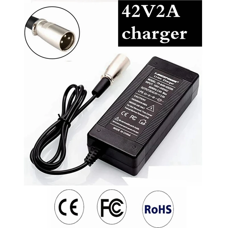 Зарядное устройство для электрического велосипеда, литиевый аккумулятор 42 в, 2 А для 36 В, зарядное устройство для электровелосипеда с 3-контактным разъемом XLR
