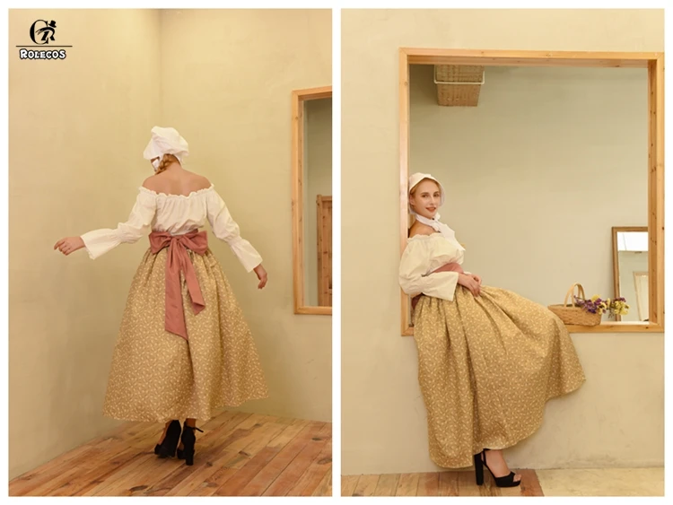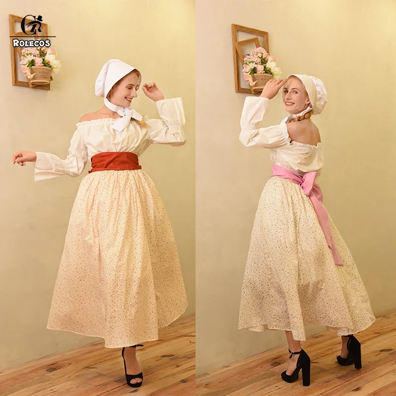 ROLECOS женское пионерское платье Калифорнийский садовый костюм домашняя работа платье историческая реконструкция костюм гражданской войны горничная Пилигрим КалифорнияИсточник:ПионерВключает:Платье, шляпа, пояс, блузка