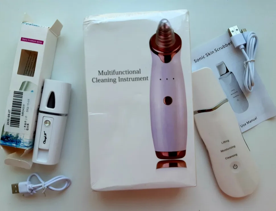 эти приборы жену привели в восторг. скрабер делает свое дело, если распарить кожу и увлажнить. приятное ощущение чистоты, конечно не салонный прибор, но для дома отлично! вакуум работает тоже хорошо, но нужно зарядить до полной и подбирать насадку в зависимости от цели применения. есть насадка для массажа, есть для удаления черных точек (тоже на распаренную кожу), есть для труднодоступных мест. короче тоже отличная штука. а вот отпариватель привел в восторг ребенка, реально прикольная вещь, распыляет ну оч мелко, наверняка в жаркую погоду пригодится тоже! рекомендую. доставка в течении месяца в иркутскую область, надеюсь качество не подведёт и приборы будут работать. скрабер во время чистки немного греется. и коробка была мятая.