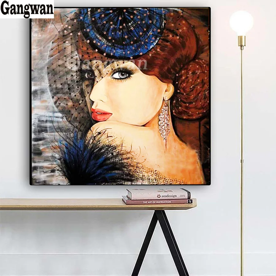 Полностью квадратная Алмазная картина, красивая шляпа, Женская Полная Алмазная вышивка, 5D стразы, мозаика, алмаз, Европейская классическая девушка