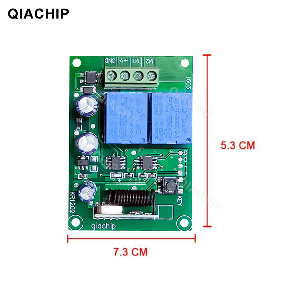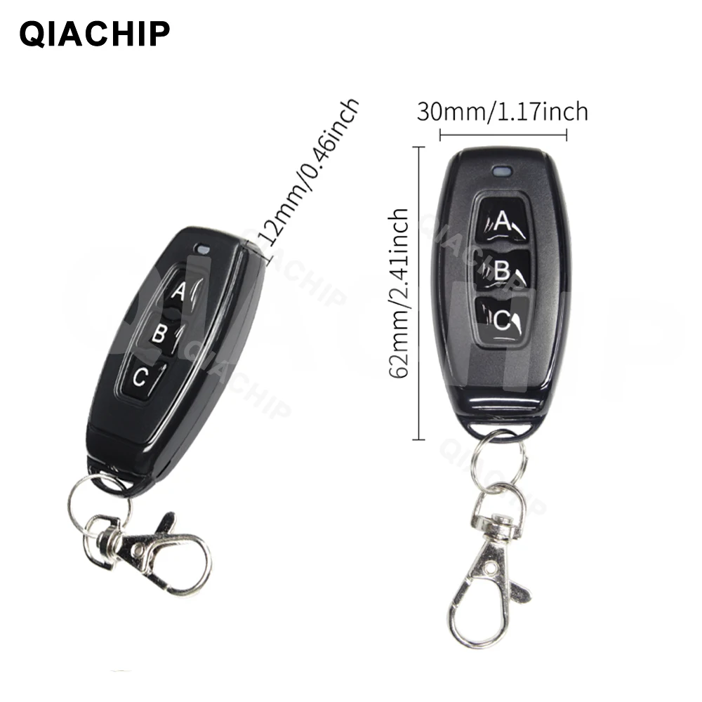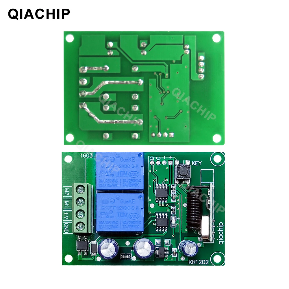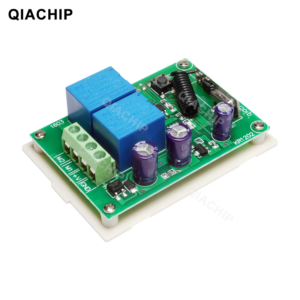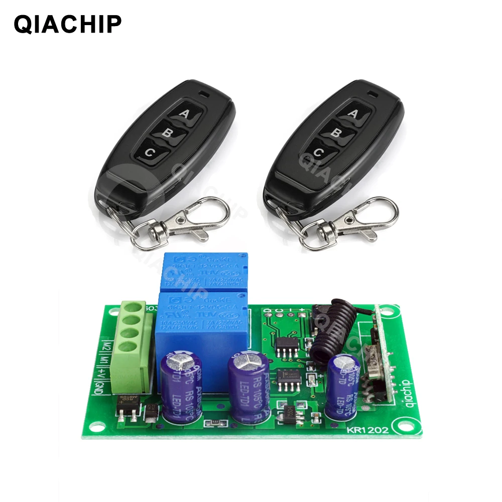 Беспроводной Радиочастотный переключатель QIACHIP, 433 МГц, 12 В постоянного тока, 2-канальный релейный модуль приемника + переключатель дистанционного управления для ворот двигателя постоянного тока, гаражного контроллера