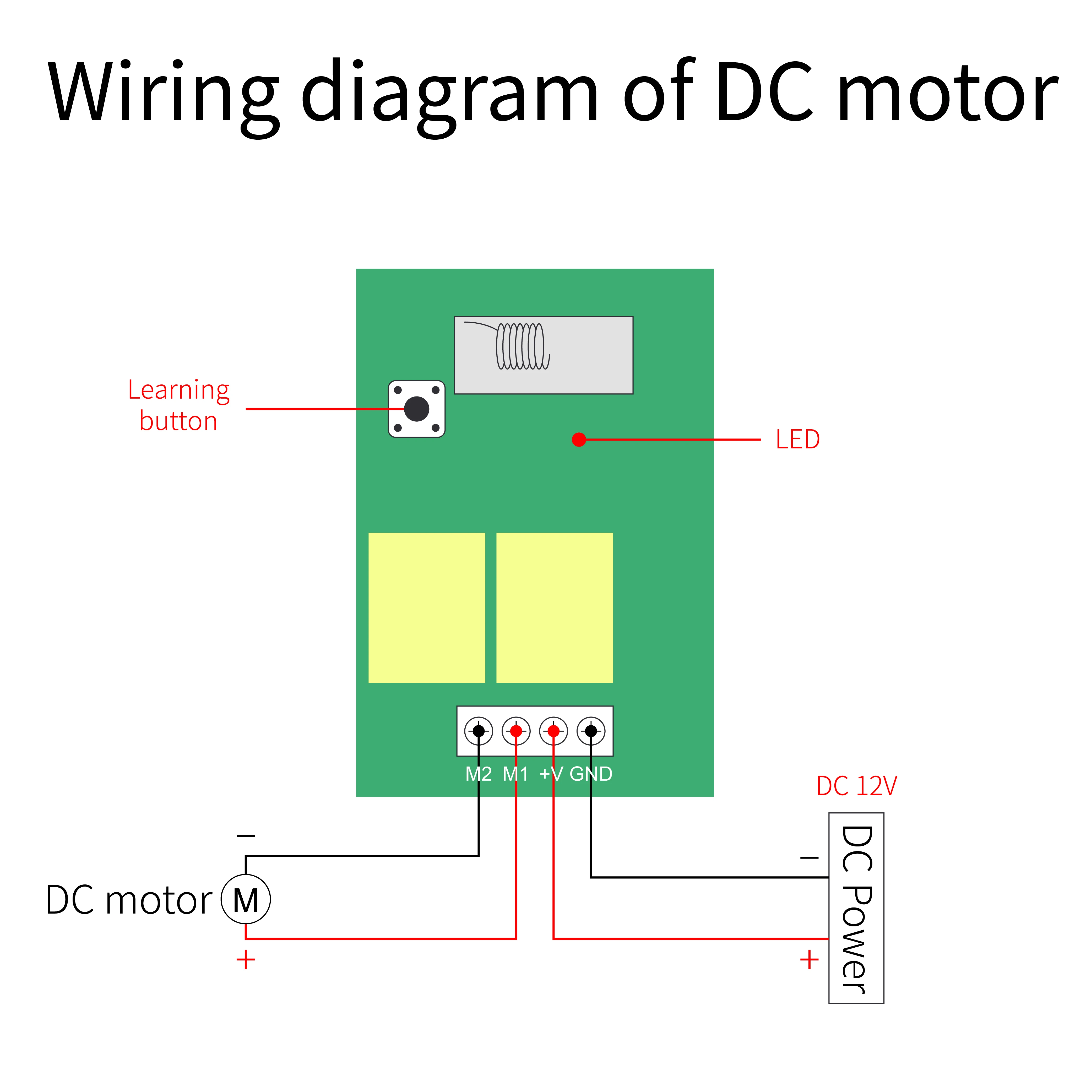 Первый шаг: Очистите память приемникаНажмите кнопку обучения на приемниках в течение 8 раз, коды будут очищены.После очистки кода, все пульт дистанционного управления больше не может работать.Шаг 2: дистанционный передатчик и приемник с настенной панельюНажмите клавишу обучения на приемнике дважды, она переходит в режим переключения.Подождите немного, светодиодный индикатор включится, он войдет в состояние обучения.Нажмите кнопку дистанционного управления, светодиодный индикатор на плате приемника будет мигать, а затем выключаетсяОбучение успешно.