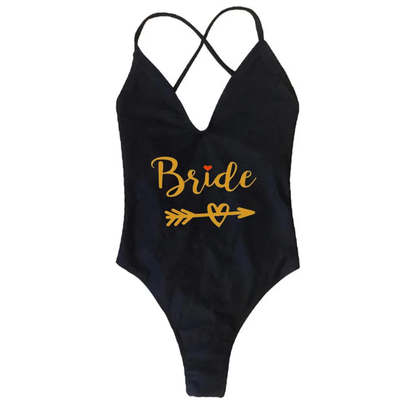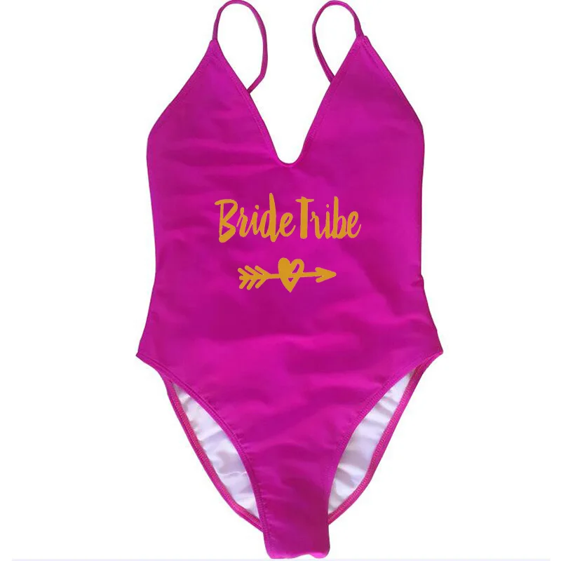 Женский слитный купальник, с золотым принтом, с открытой спиной, для девичника, пляжная одежда для свадьбы, вечеривечерние, надпись Bride Tribe