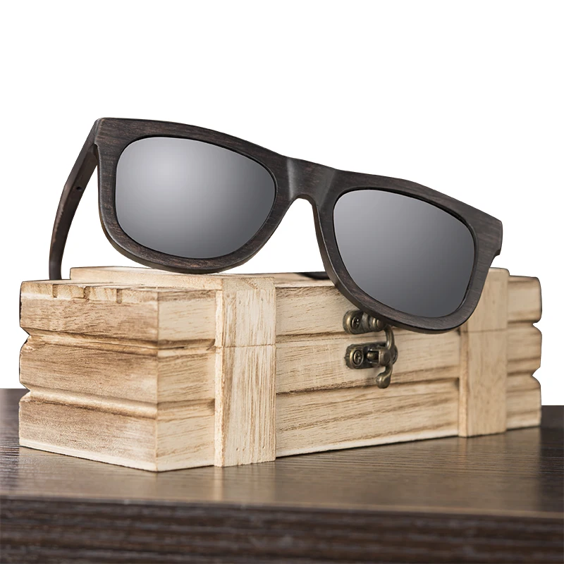 Мужские солнцезащитные очки в стиле ретро BOBO BIRD, черные деревянные солнцезащитные очки с серыми поляризационными линзами, Лазерная деревянная оправа, Прямая поставка в деревянной коробке