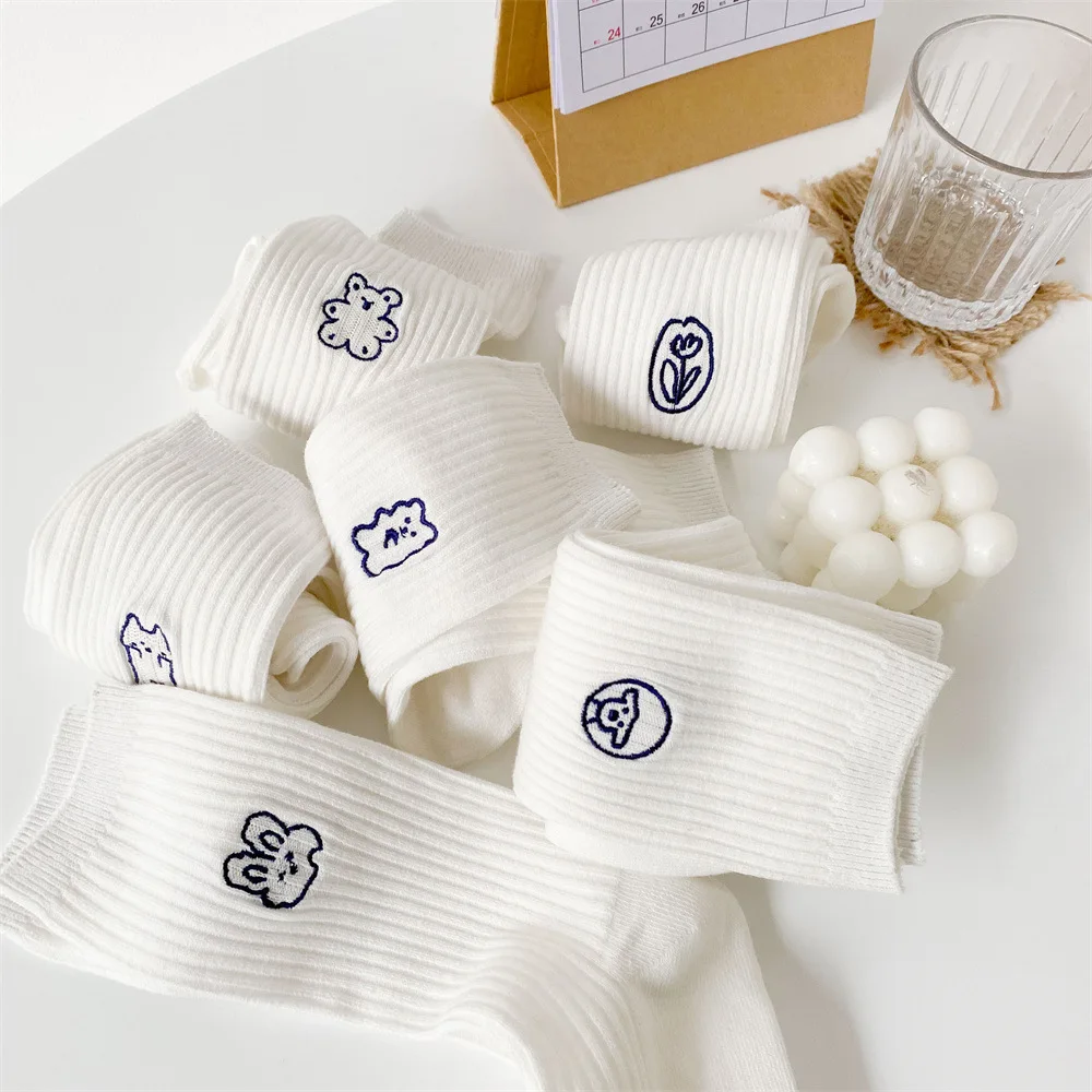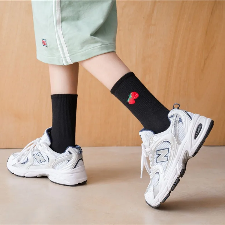 Носки женские хлопковые с вышивкой, милые цветные длинные с фруктами, вишней, персика, авокадо, арбузом, виноградом, рождественские
