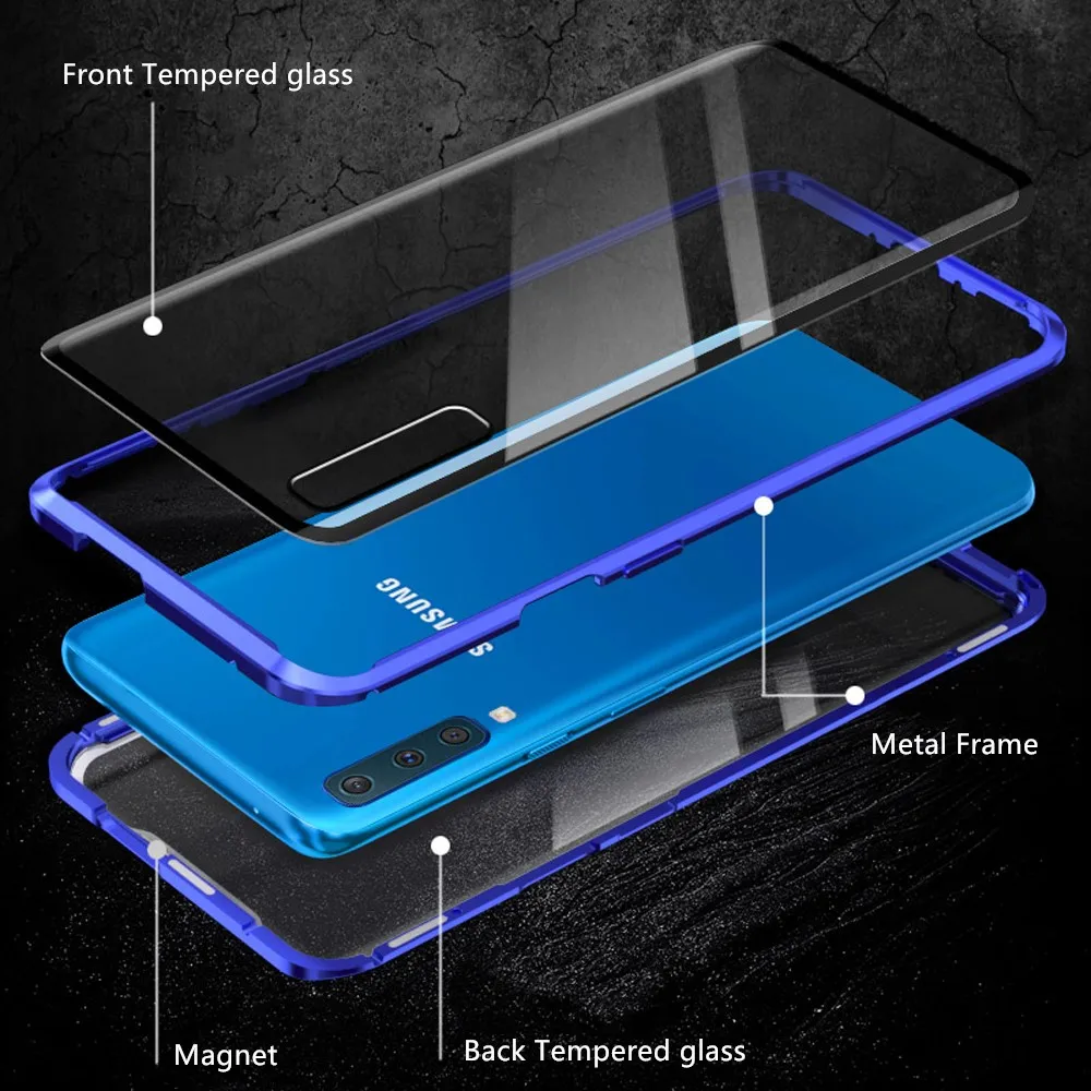 Магнитный поглощающий чехол для Samsung Galaxy A40A50A70A90, 360 полная защита корпуса, двусторонняя задняя крышка из закаленного стекла