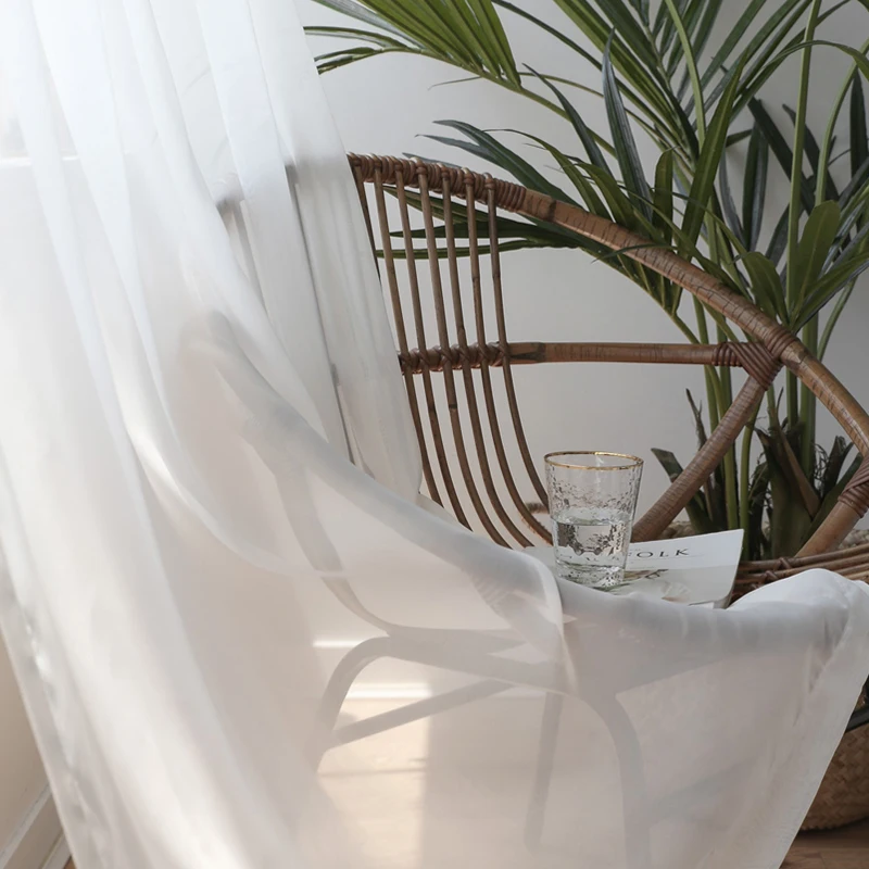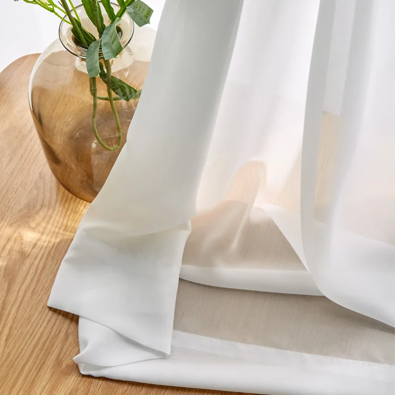 Супермягкие приятные на ощупь шторы из белого тюля, 100% полиэстер, для гостиной, современные шифоновые однотонные прозрачные Занавески S278 C