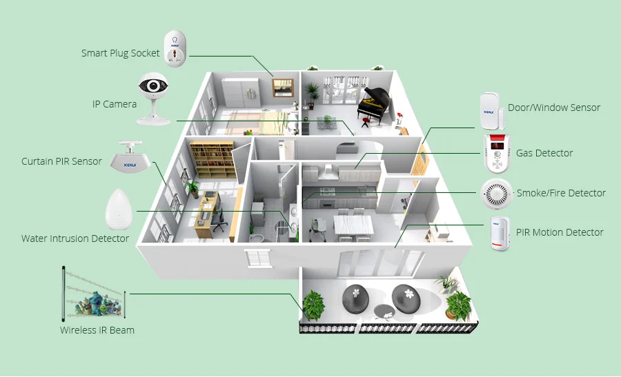 Arm и disarm KERUI сигнализация с вашим голосом и получать мобильные оповещения о двери/окна открытия или дыма