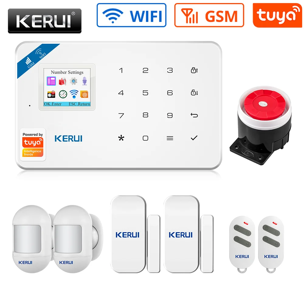 KERUI W181 WIFI GSM Tuya домашняя система охранной сигнализации приложение пульт дистанционного управления цветной экран сирена двери окна датчик сигнализации комплект