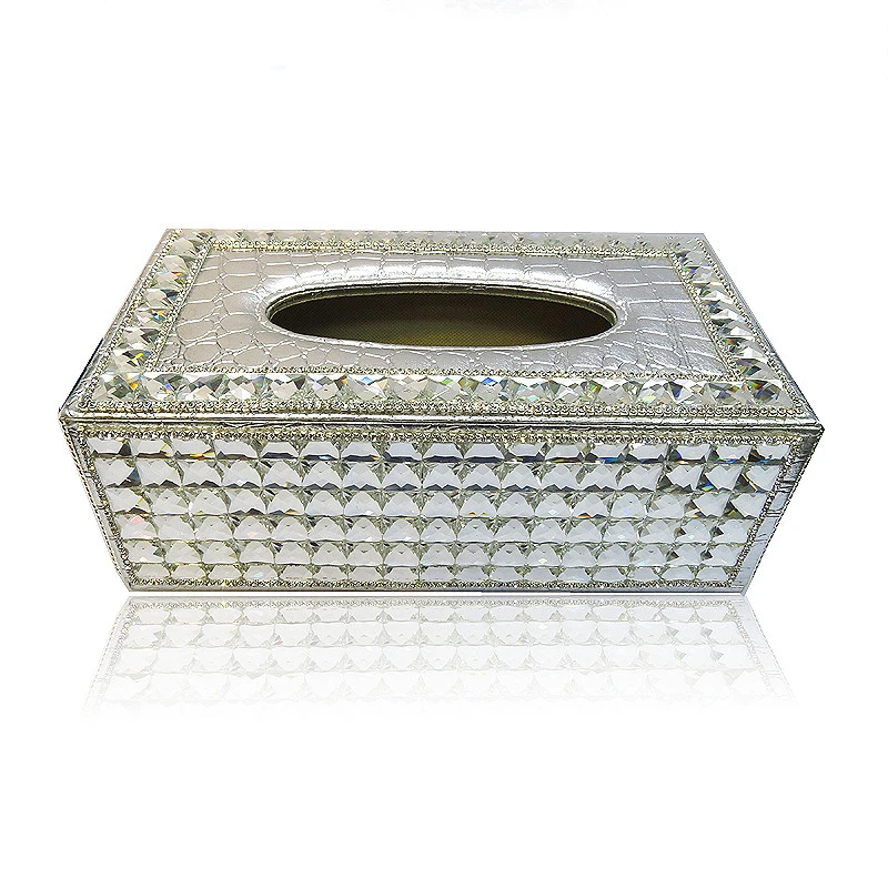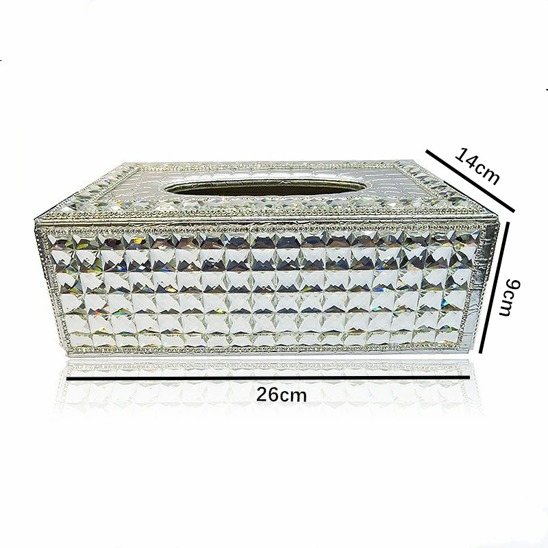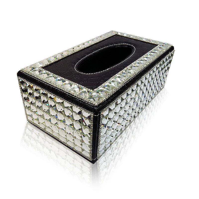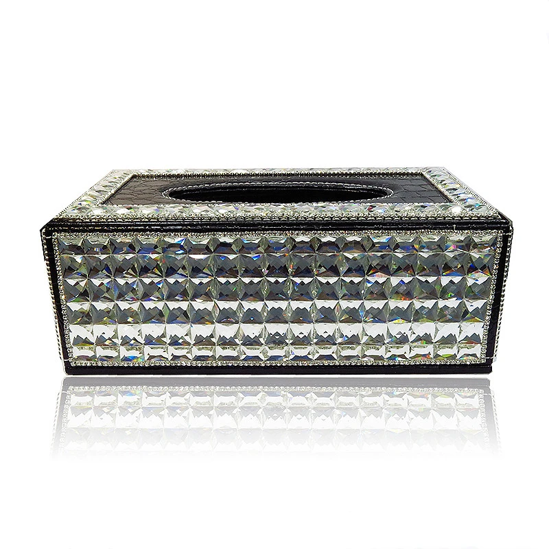 Большая прямоугольная кожаная коробка для салфеток со стразами и кристаллами, автомобильный держатель для салфеток для домашнего туалетного столика, коробка для хранения детских салфеток