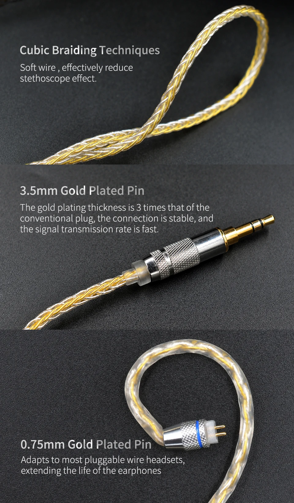 Наушники KZ кабель 8-жильный, золотистый, серебристый, с смешанным ...