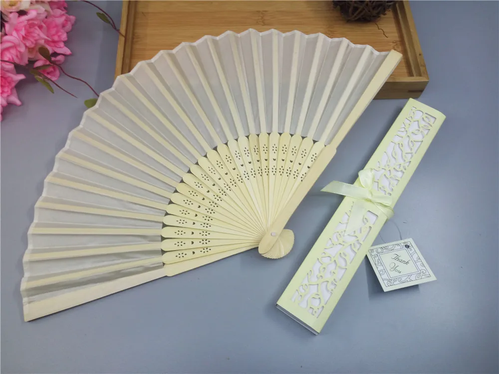 1 шт.партия Роскошный шелковый складной Ручной Веер в элегантной подарочной коробке лазерной резки + вечерниесвадебный подарок