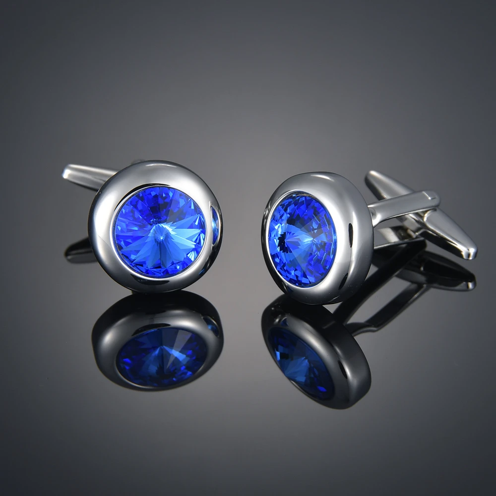 Классические запонки, роскошный подарок, вечерние, Свадебный костюм, рубашка, пуговицы, кристаллы, драгоценные камни, круглые запонки, высокое качество
