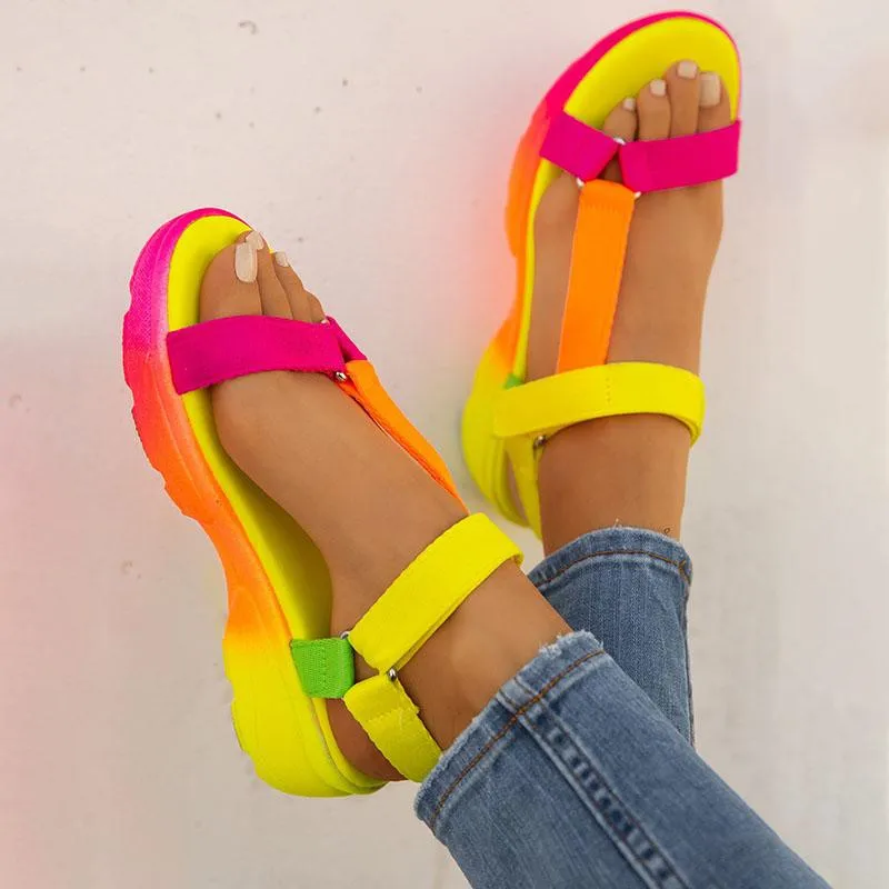 Босоножки DORATASIA женские с открытым носком, на платформе, Брендовые повседневные сандалии радужного цвета, обувь на липучке, модель Лето 2020