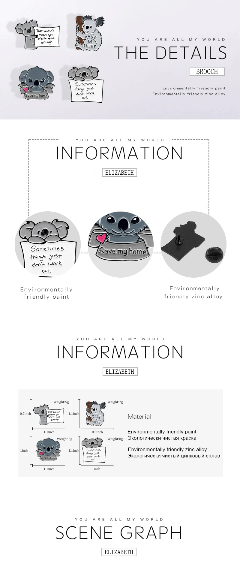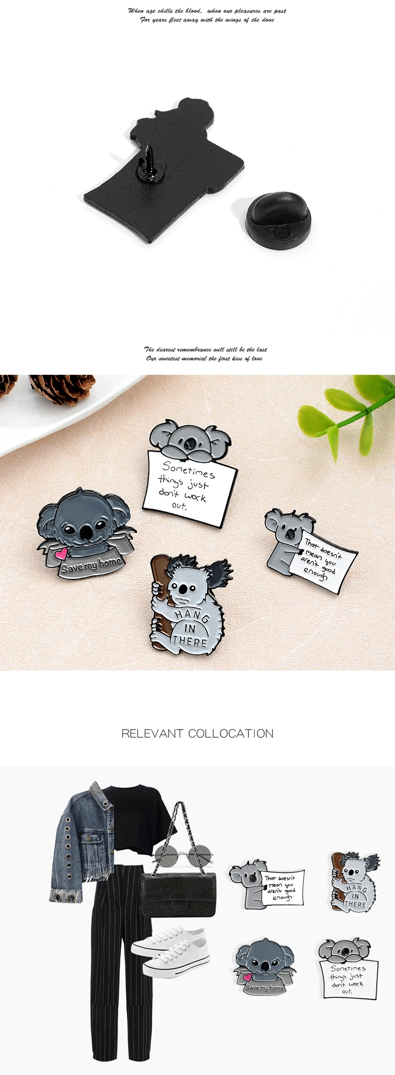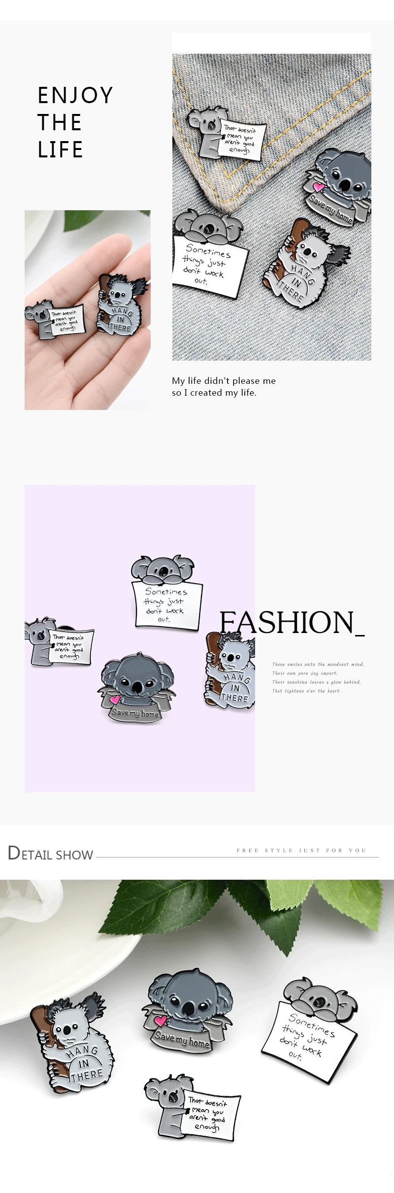 Серая коала медведь эмали штырь мультфильм пижамы с забавными животными Цитата советы дерево бумага Примечание мешочек для брошек одежда изделия мягкая эмаль значки подарки
