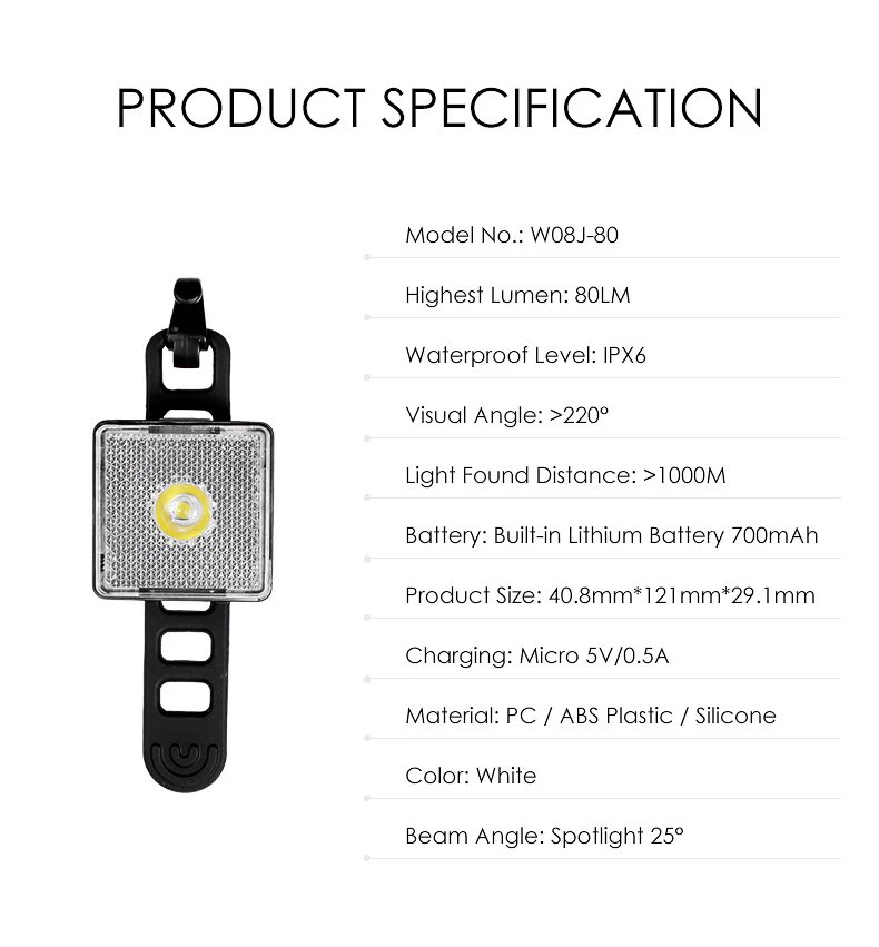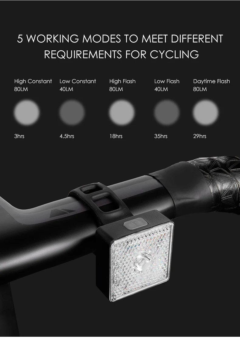 Велосипедный предупреждающий фонасветильник CACIRON, 10-80 лм, велосипедная фара, безопасный светоотражающий, водонепроницаемый, задний фонарь