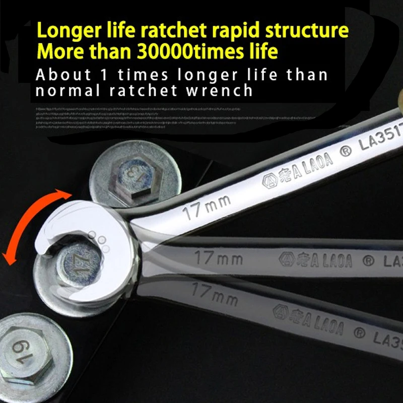 Открытая храповая конструкция, быстрая и трудозатратная. CR-V сталь, высокая жесткость, высокий крутящий момент. Долгий срок службы, более 30000 раз. Отполируйте поверхность, вытрите антикоррозийное масло, красиво и элегантно.