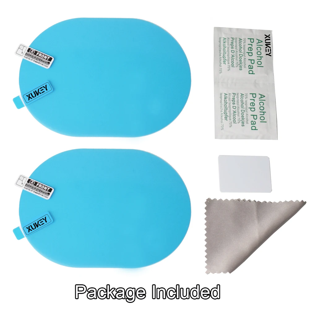 6.PET + Nano Защитная пленка с коэффициентом пропускания 99%, антибликовым покрытием, противотуманным, анти-туманным, водонепроницаемым, непромокаемым, который эффективно защищает вашу безопасность вождения в ночное время или в дождливый день, держите зеркало заднего вида чистым все время.