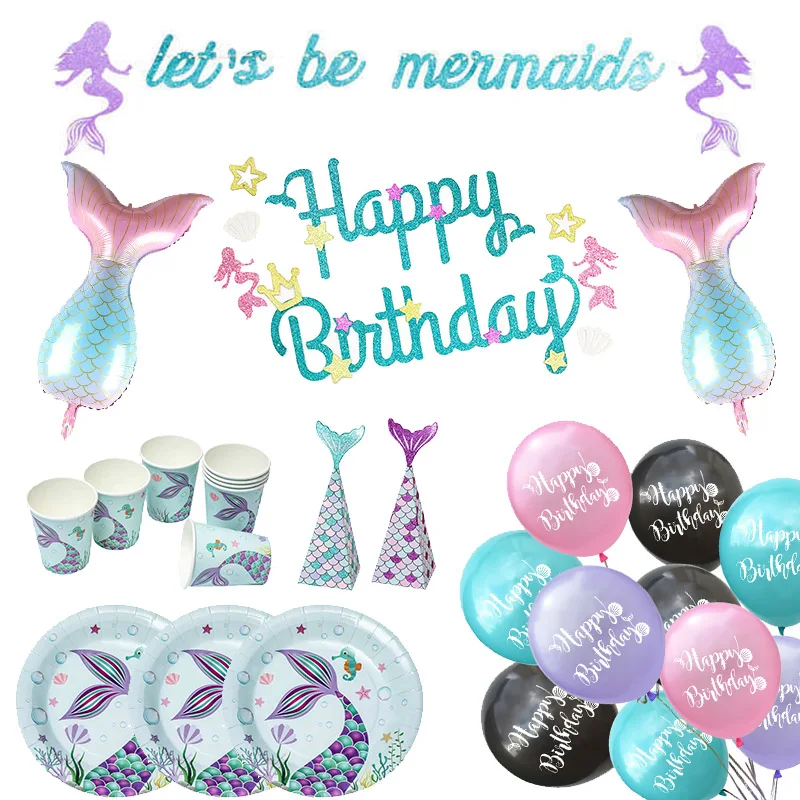 Одноразовая посуда русалка для дня рождения, праздничный воздушный шар маленькой Русалочки, украшение для девочек, товары для первого дня рождения WQ02