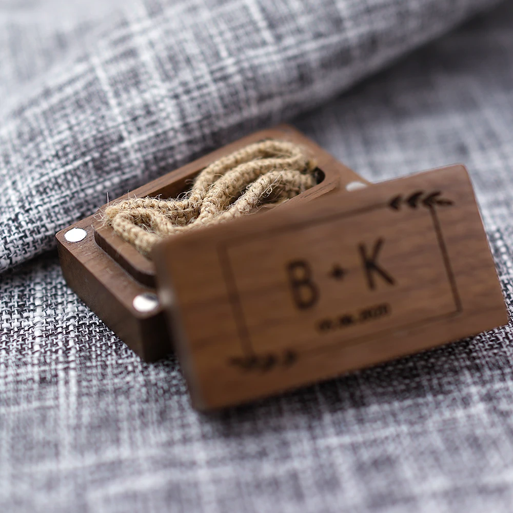 Индивидуальные, деревянные Свадебные деревянная коробочка для кольца держатель своими руками на имена и дата обручальное кольцо шкатулка