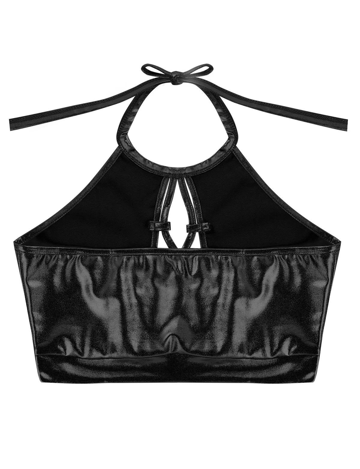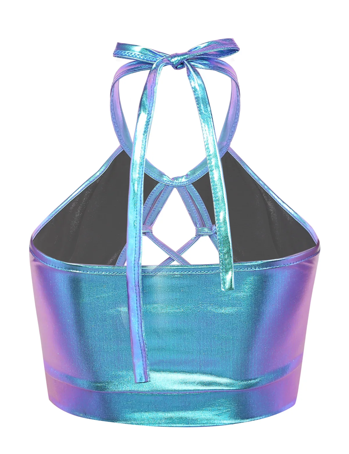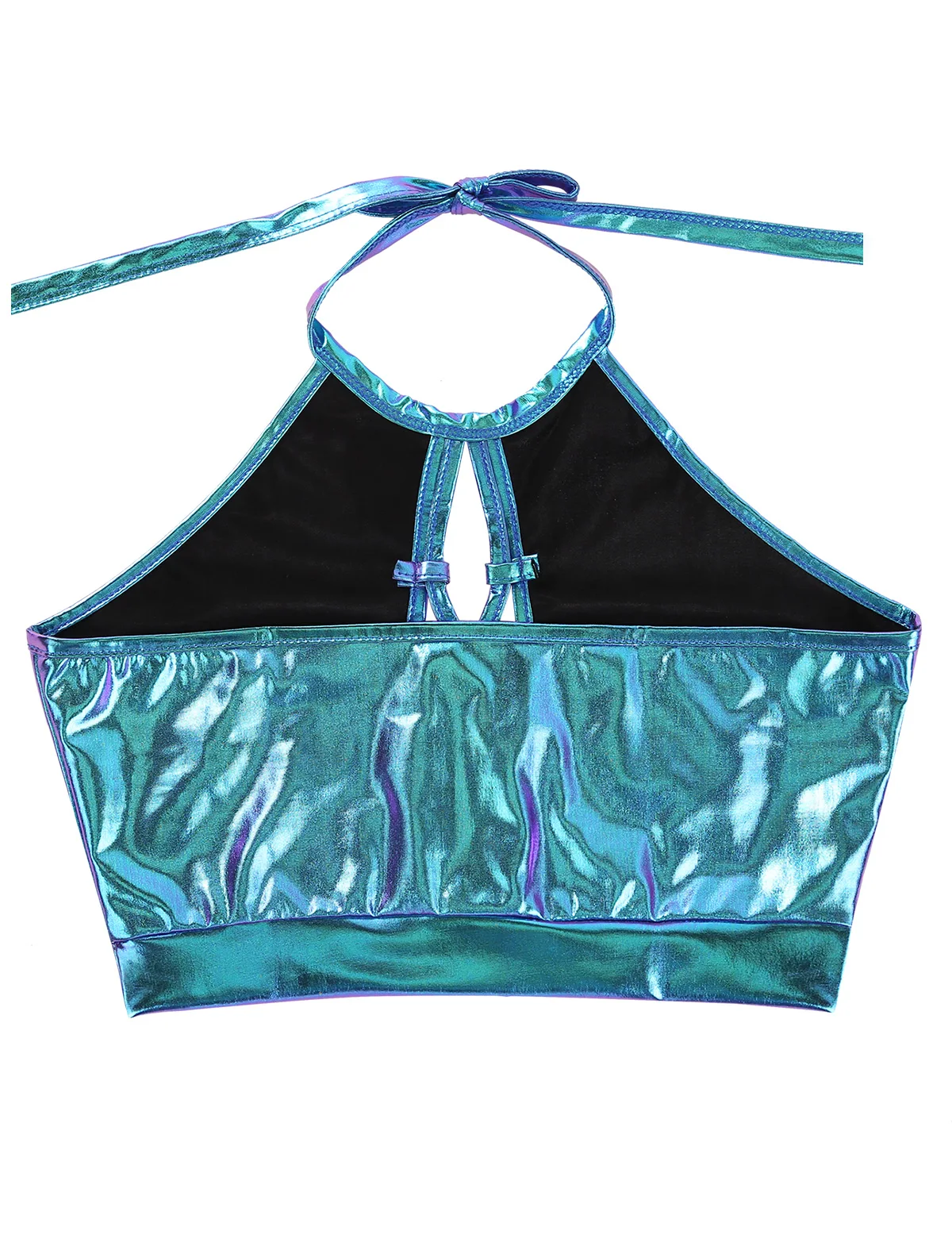 Топ женский Блестящий металлический с открытой спиной, фестивальный рейв