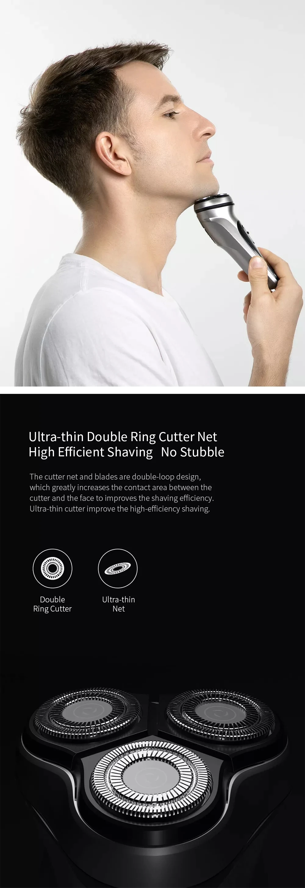 Никогда не использовал электробритвы, может так и должно быть, но немного рвёт волосы