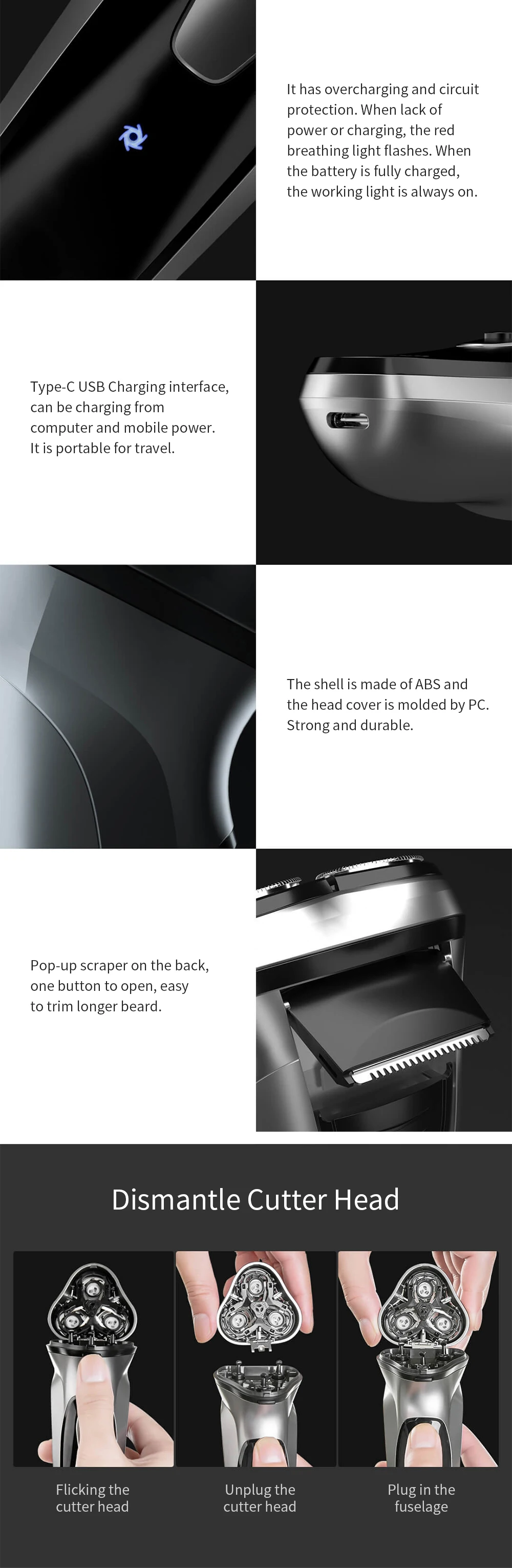 Устройство чудесное, я использую бритвы Phillips там 45 лет и никогда не увидел такого, очень хорошо, негативы-это материал корпуса-пластиковая вторая категория и руководство, которое поставляется на китайском языке, но стоит купить для эффективности резаков.