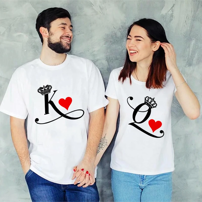 Футболка для влюбленных король и Королева; Одежда для жены и мужа; Harajuku; Одинаковая одежда для женщин и мужчин; Футболка для влюбленных; Одежда