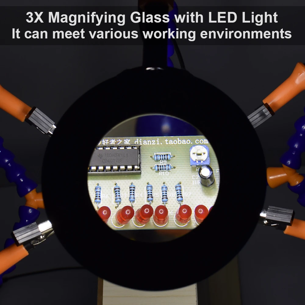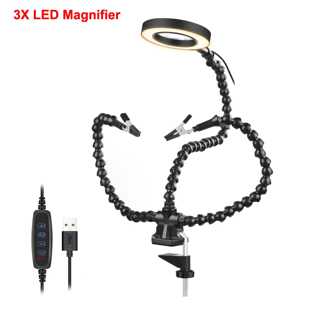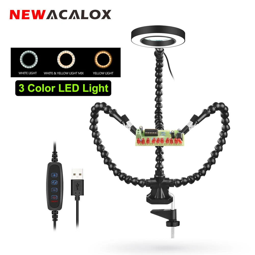 NEWACALOX настольная клипса PCB подставка для паяльника 3X лупа светодиодный светодиодной подсветкой для сварки Рука помощи Гибкая рука паяльник Третий ручной инструмент