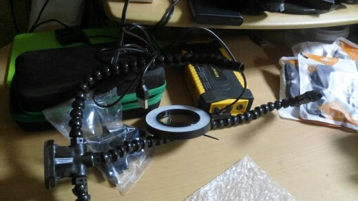 Лупа с подсветкой отличные, а вот гибкие штанги пластиковые и не внушают доверия. Но надеюсь, что прослужат долго. Спасибо продавцу.