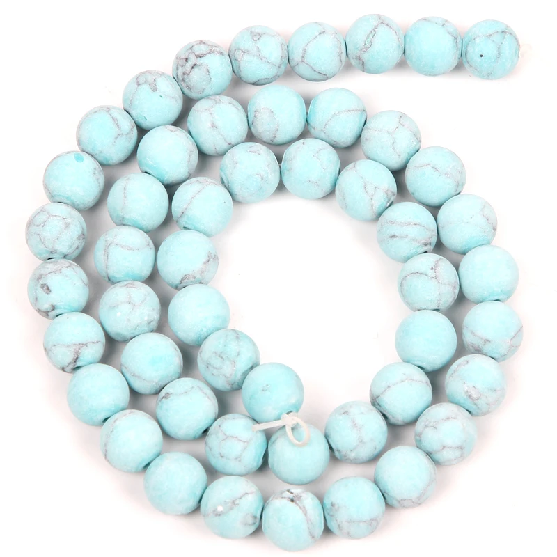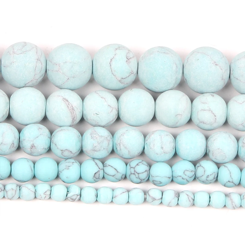 Бусины из натурального камня, матовые светильник-голубые бирюзовые круглые бусины россыпью для изготовления ювелирных изделий, браслетов для рукоделия, нити 4-12 мм