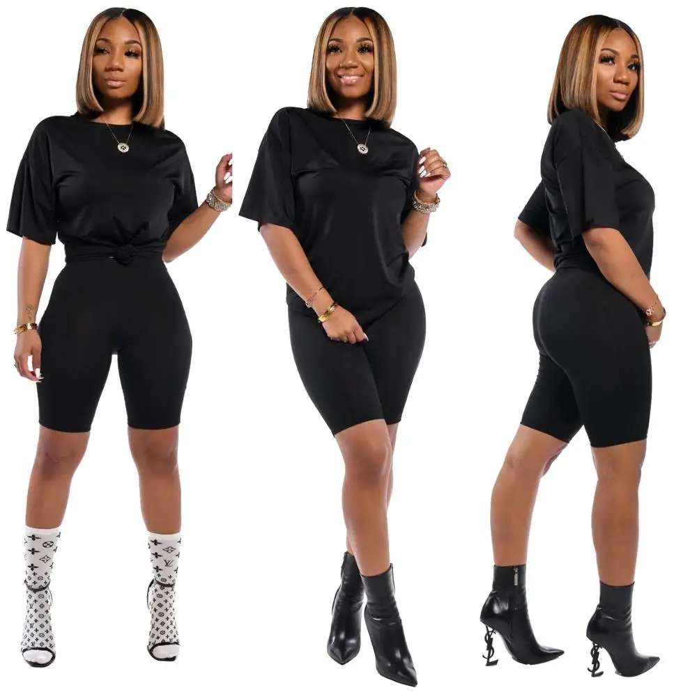 Женская спортивная одежда, комплект из двух предметов, повседневный однотонный укороченный топ с коротким рукавом и брюки, комплект, домашняя одежда, женский наряд, спортивный костюм icon star icon star icon star icon star icon star