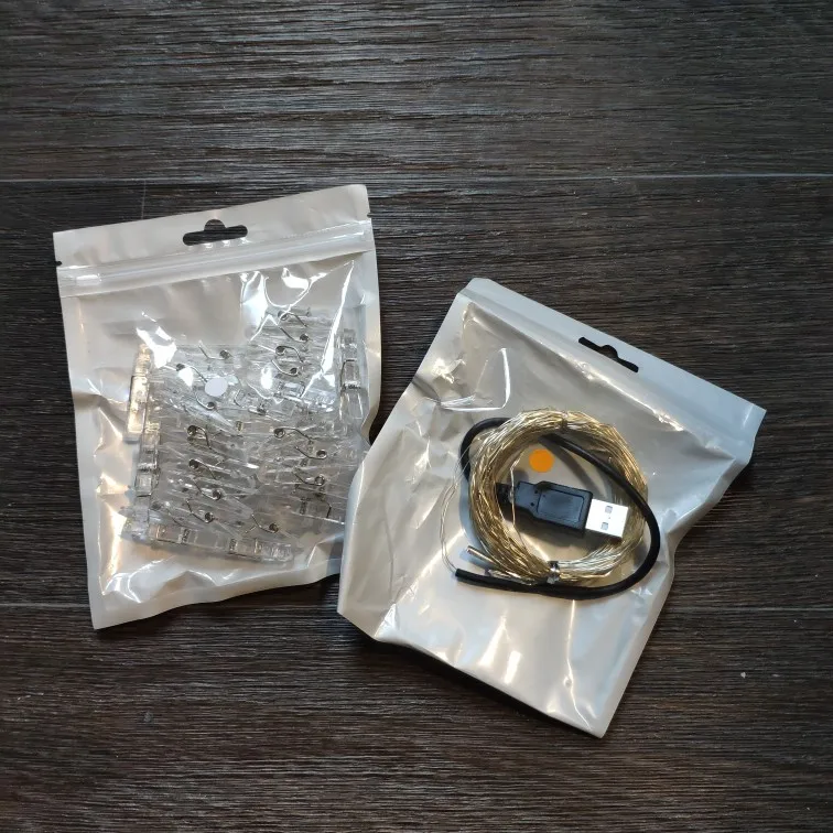 Хороший продукт Быстрая доставка Они дают мне 5 м длинную световую полоску и 50 прозрачных зажимов для фотографий