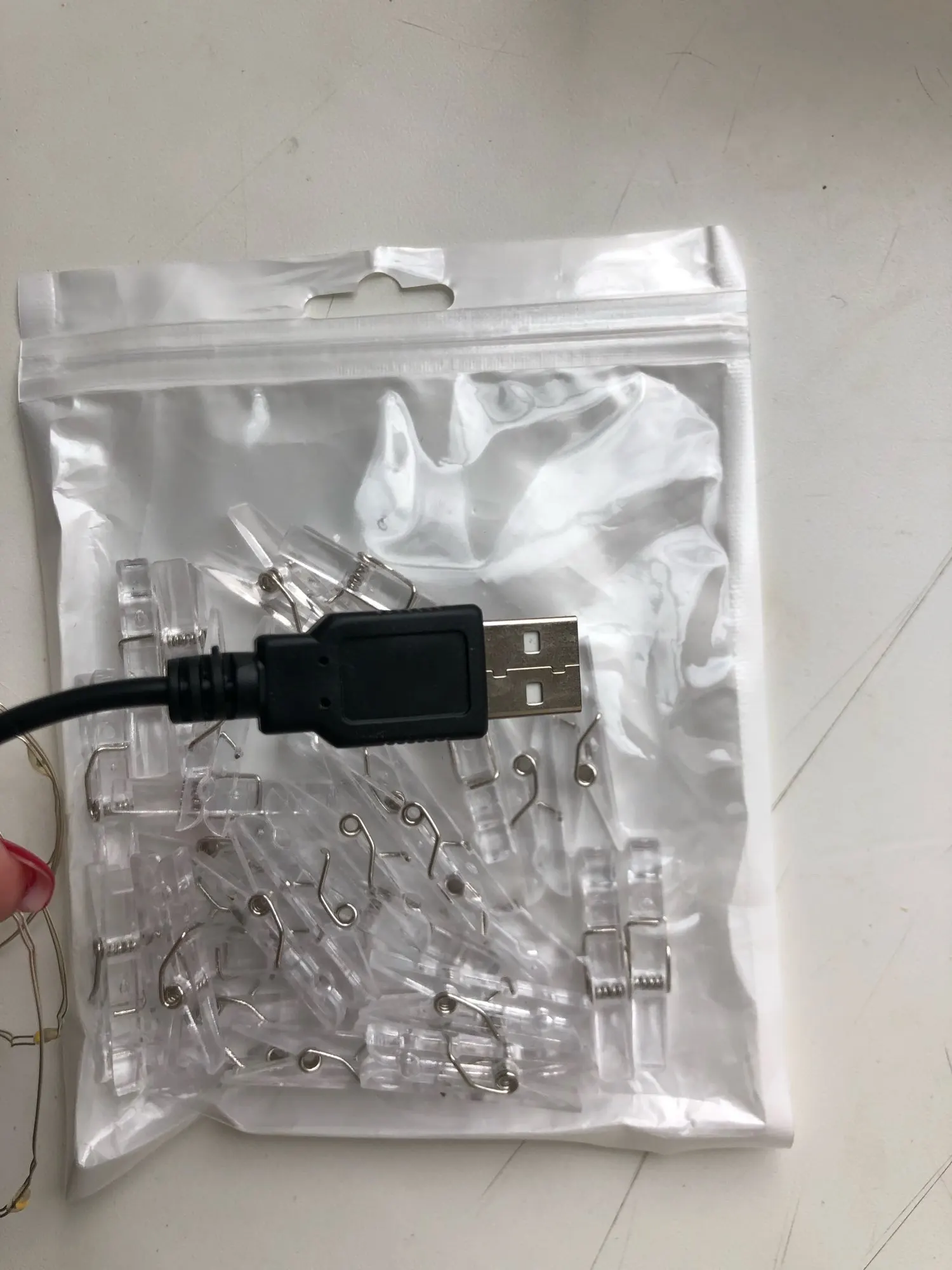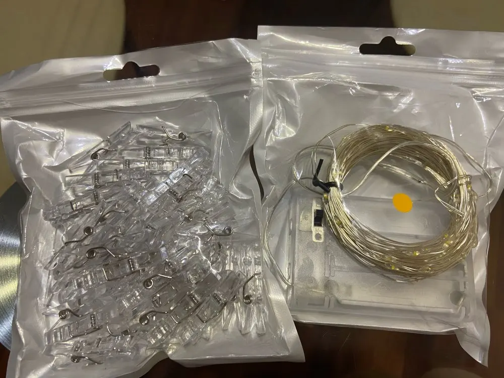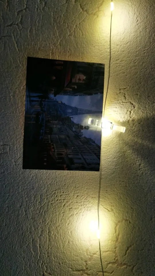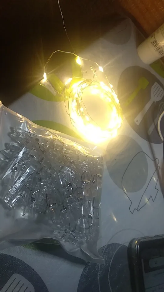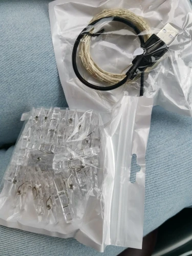 Хорошие огни, штекер с usb выглядит немного странно, как будто его вытащили из другого, чтобы приклеить его к огням. Но он отлично работает и выглядит красиво в темноте. Он поставляется с прозрачными щенками, чтобы повесить фотографии.