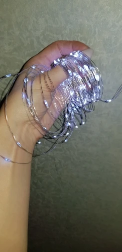 Отличная гирлянда. Цвет как и хотела, тепло желтый. 10 метров оказалось даже много, но я полностью довольна. Светит ярко, хоть и показалось, когда увидела леску, чтобы будет тусклой. Качество хорошее, заказывала чтобы работала от батареек.