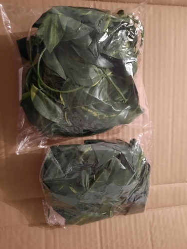 Он поставляется с очень сильным запахом, похожим на рыбу, но оставляя его в пакете на некоторое время, запах сразу же оставляется! Количество листьев хорошее, я бы рекомендовал купить минимум 3 штуки, чтобы не было слишком пусто, что вы хотите украсить! Доставка занимает около полутора недель :)