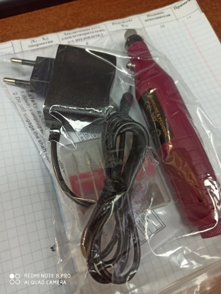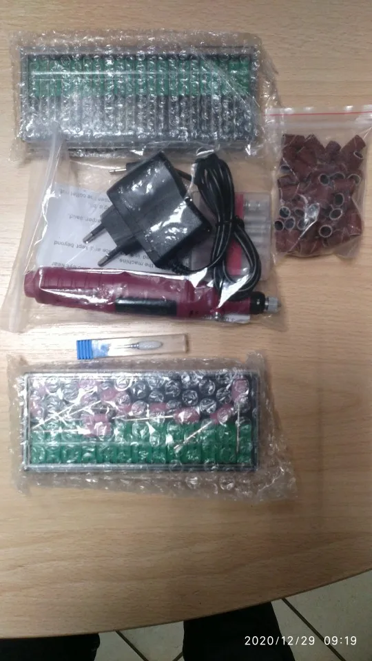 Скорость доставки просто лучшая! Заказала 23 ноября вечером, сегодня 27 ноября в 11:15 меня разбудил курьер в домофон звонком. Работает хорошо, провод цел, по длине вполне удобный, фрезы целые, нет запаха. Упаковано замечательно: в почтовый пакет с пупыркой, а внутри вот такой рулет из пакета (на фото). В итоге : качеством товара и скоростью доставки довольна. Продавца однозначно рекомендую! P. S. Посмотрим сколько проживёт в деле, буду надеяться что долго )