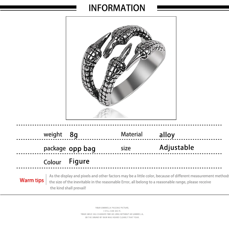 Мужское кольцо в виде змеи, ящерицы, дракона, регулируемое, 2020