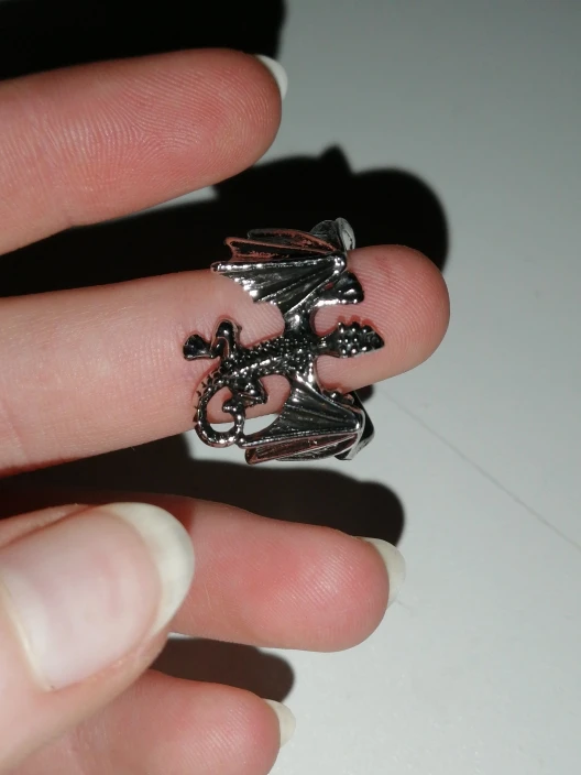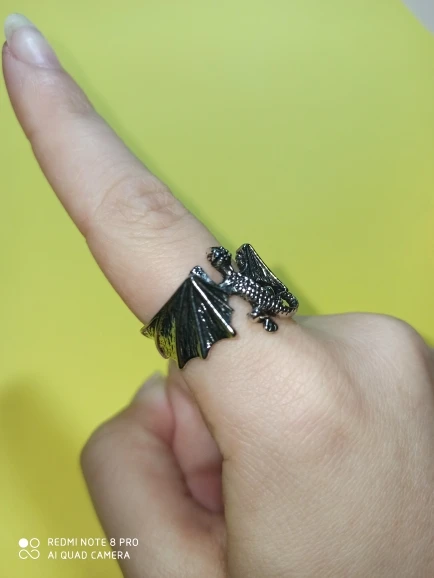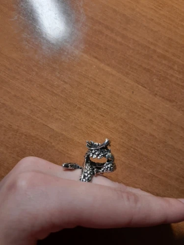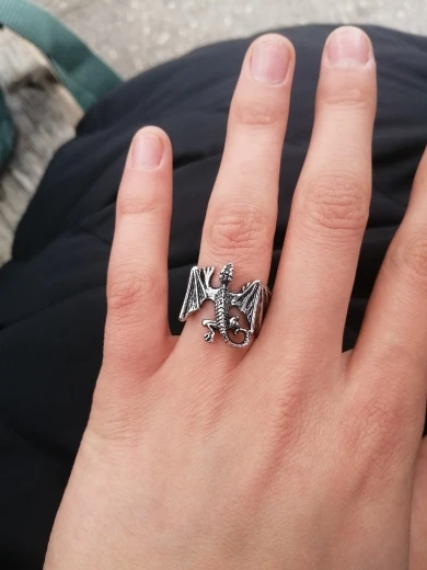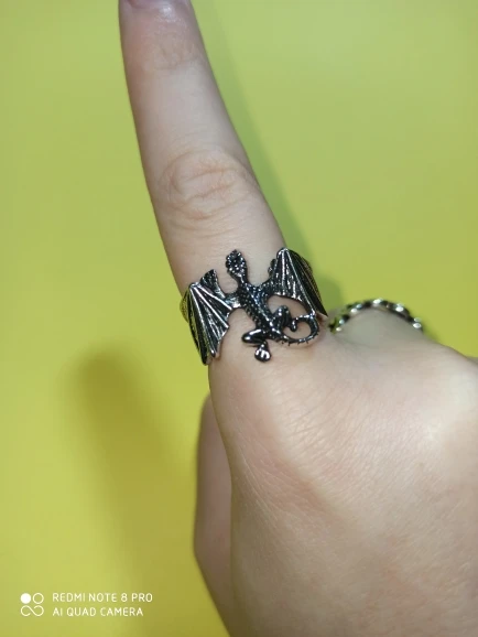 Кольцо не могу рекомендовать. Отлито хорошо. Но острые крылья и нос дракона - они будут резать палец. После нескольких разжатий отлетело крыло, то есть половина кольца.