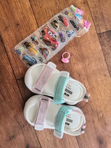 Симпатичные сандали , пришли за 13 дней . Товар отслуживался. Визуально- будут чуть чуть большеваты , но на вырост самое то . На 14 см заказывала 22 размер. Все соответствует описанию . Продавец положил в подарок колечко и наклейки. Очень мило .