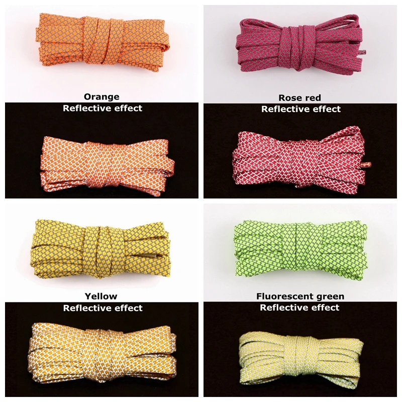 Светоотражающие шнурки на плоской подошве, флуоресцентные шнурки для кроссовок, спортивные шнурки, шнурки для бега, шнурки для взрослых и детей, 1 пара