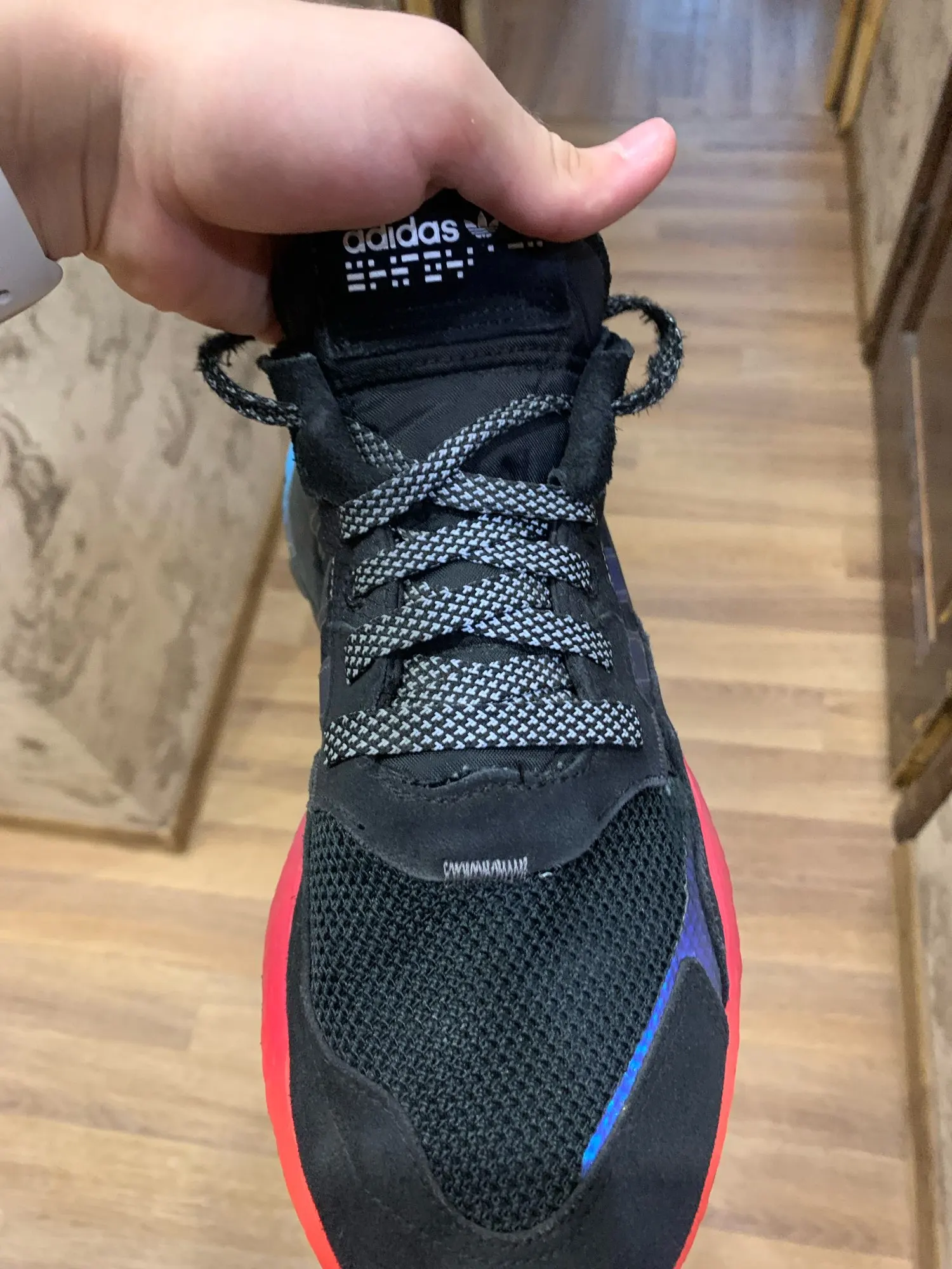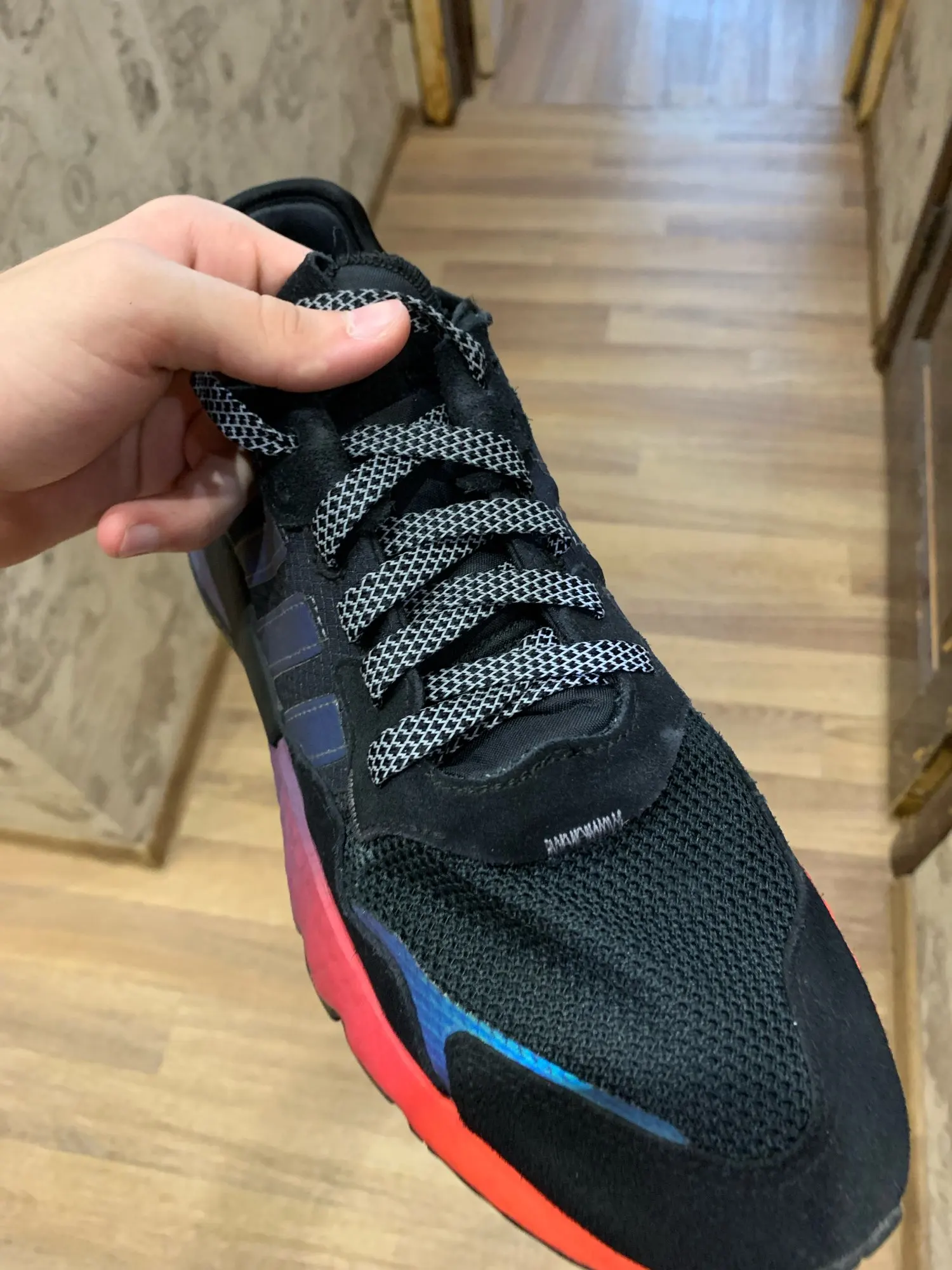 клевые шнурки, быстрее месяца, отражают хорошо!