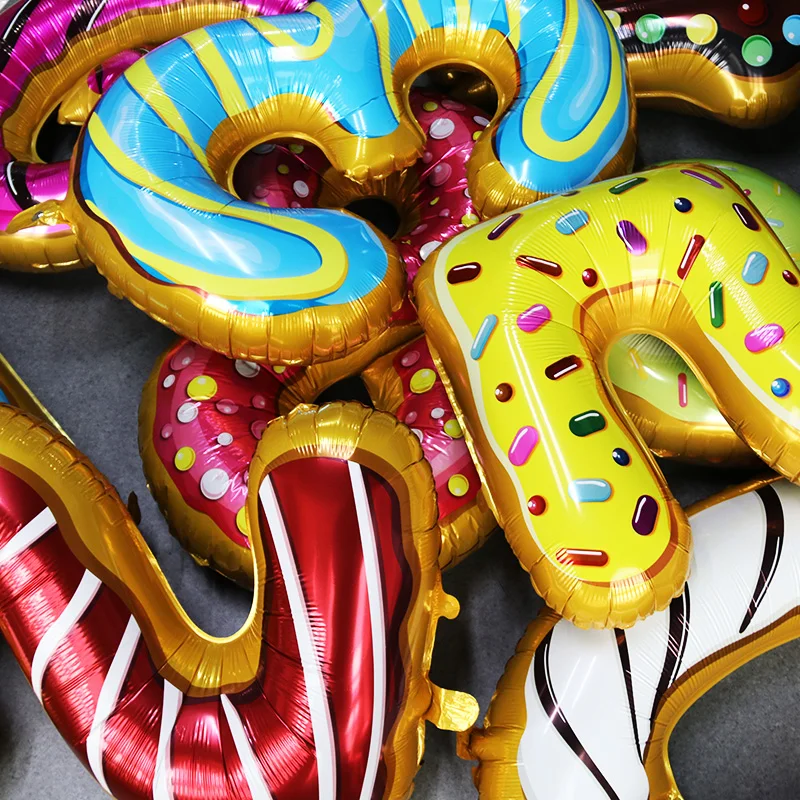 1 шт. 42 дюйма цифры-Пончики торт десерт напечатанная фигурка фольгированные воздушные шары для детей украшение для дня рождения Милая цифра воздушный шар