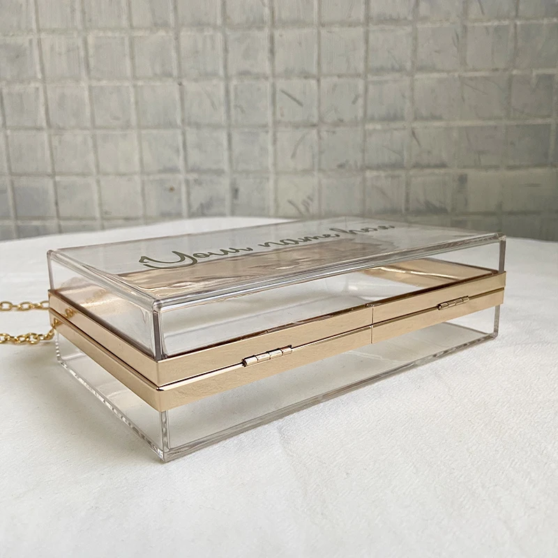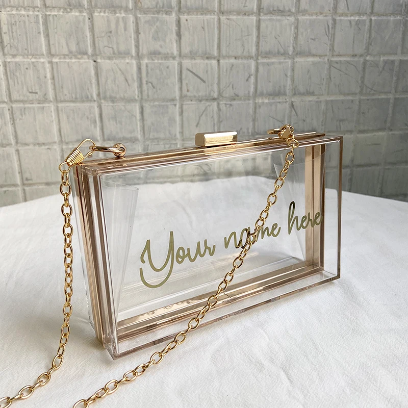 Персонализированный Золотой каркас акриловый клатч монограмма кошел...