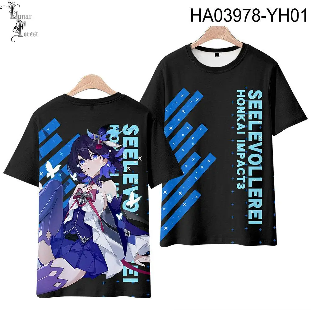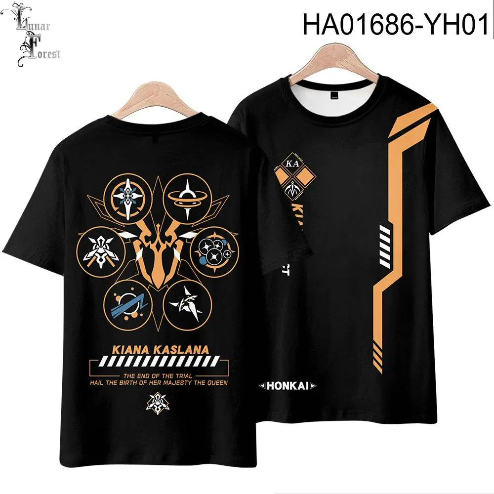 Футболка с 3D принтом GAME Honkai Impact 3, летняя модная футболка с круглым вырезом и коротким рукавом, популярная уличная одежда размера плюс