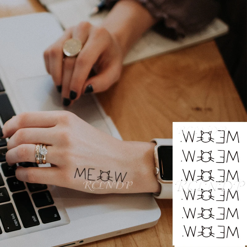 Водостойкая Временная тату-наклейка, Творческие буквы, милая голова кошки, комбинация искусственных татуировок для девочек, женщин и мужчин
