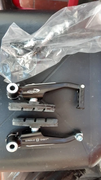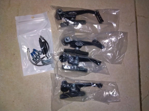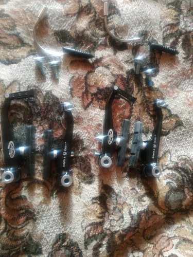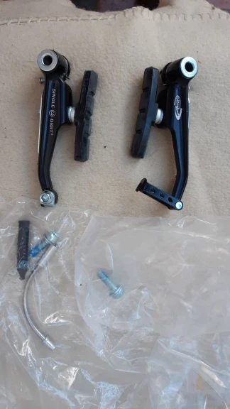 Пришли за 15 дней. Отличные v-brake и до тысячи р. Есть косяки (и походу у всех). Видимо хорошая копия, или же старые со склада как пишут. Конструкция втулки несколько другая. Она не запрессована как на других тормозах, а ходит вместе с штырём, который упирается в раму (три дырки за счёт которых можно регулировать жёсткость пружины). Пружины достаточно жёсткие. На форумах пишут, что по торможению сравнительно с тормозами shimano deore lx.