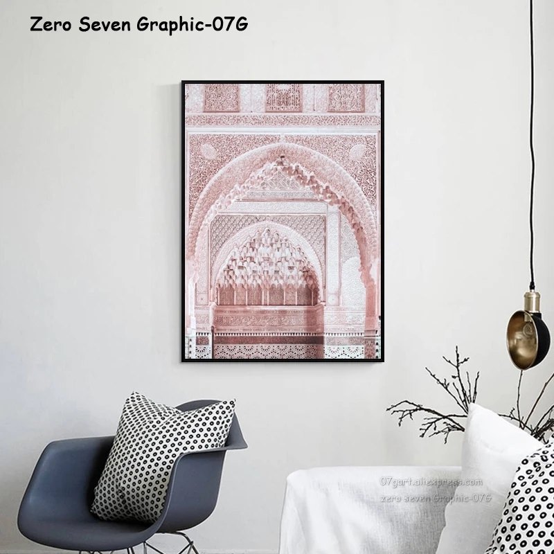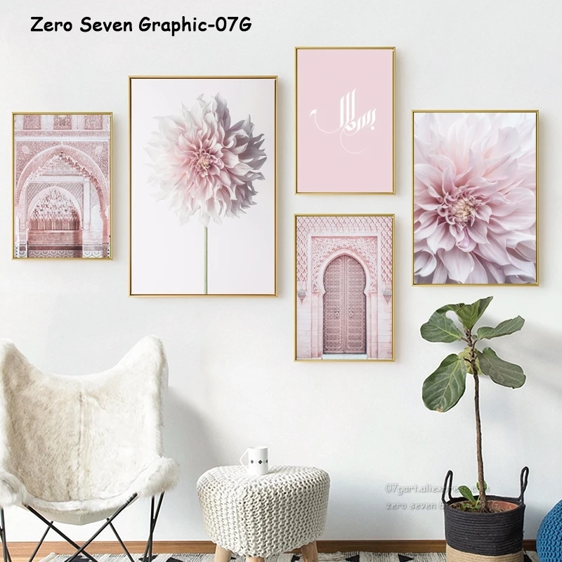 Современная розовая Цветущая георгина, исламская мечеть, архитектура, Mihrab, холст, плакаты и принты, Настенная картина для украшения комнаты