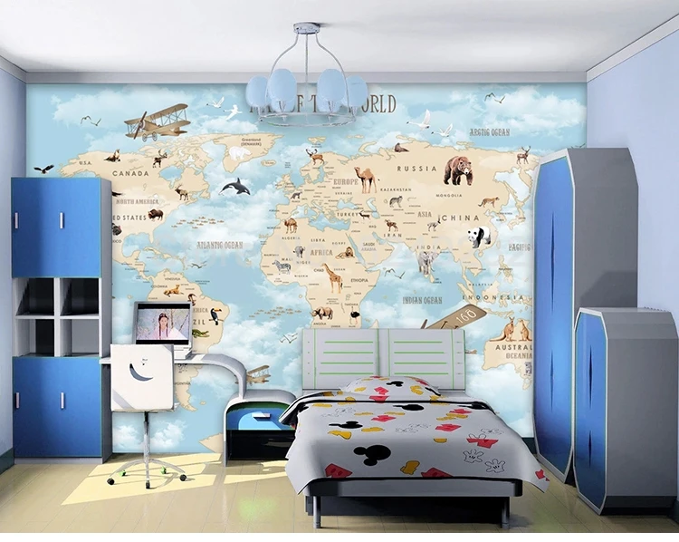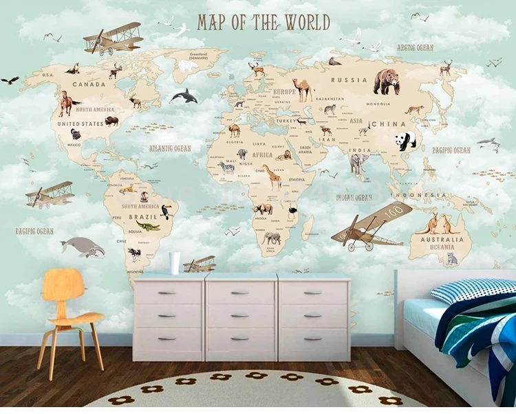Пользовательские Мультяшные животные карта мира фоновые настенные 3D обои для гостиной, спальни, детской комнаты, украшение из папье, Фреска 3D