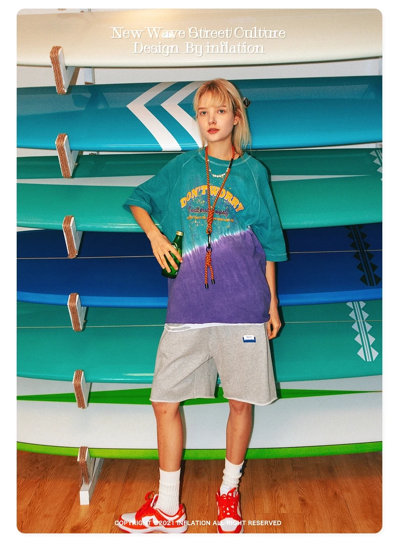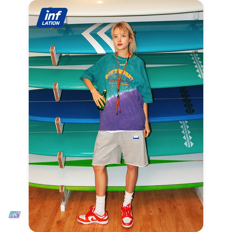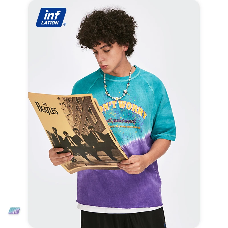 Футболка мужская хлопковая с завязкой, модная окрашенная с коротким рукавом, уличная одежда, повседневная в стиле хип-хоп, 2021